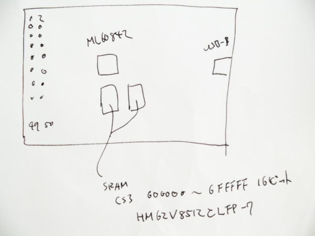 | CS3 | 00600000 - 006FFFFF | 8bit | SRAM (HM62V8512CLFP-7) 1Mバイト |