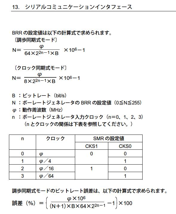 - 計算すると、BRR=127(n=0)となる。このとき、誤差は0.159%となり、1%以内なので通信可能と考えられる。