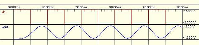 - 矩形波を入れたときの波形